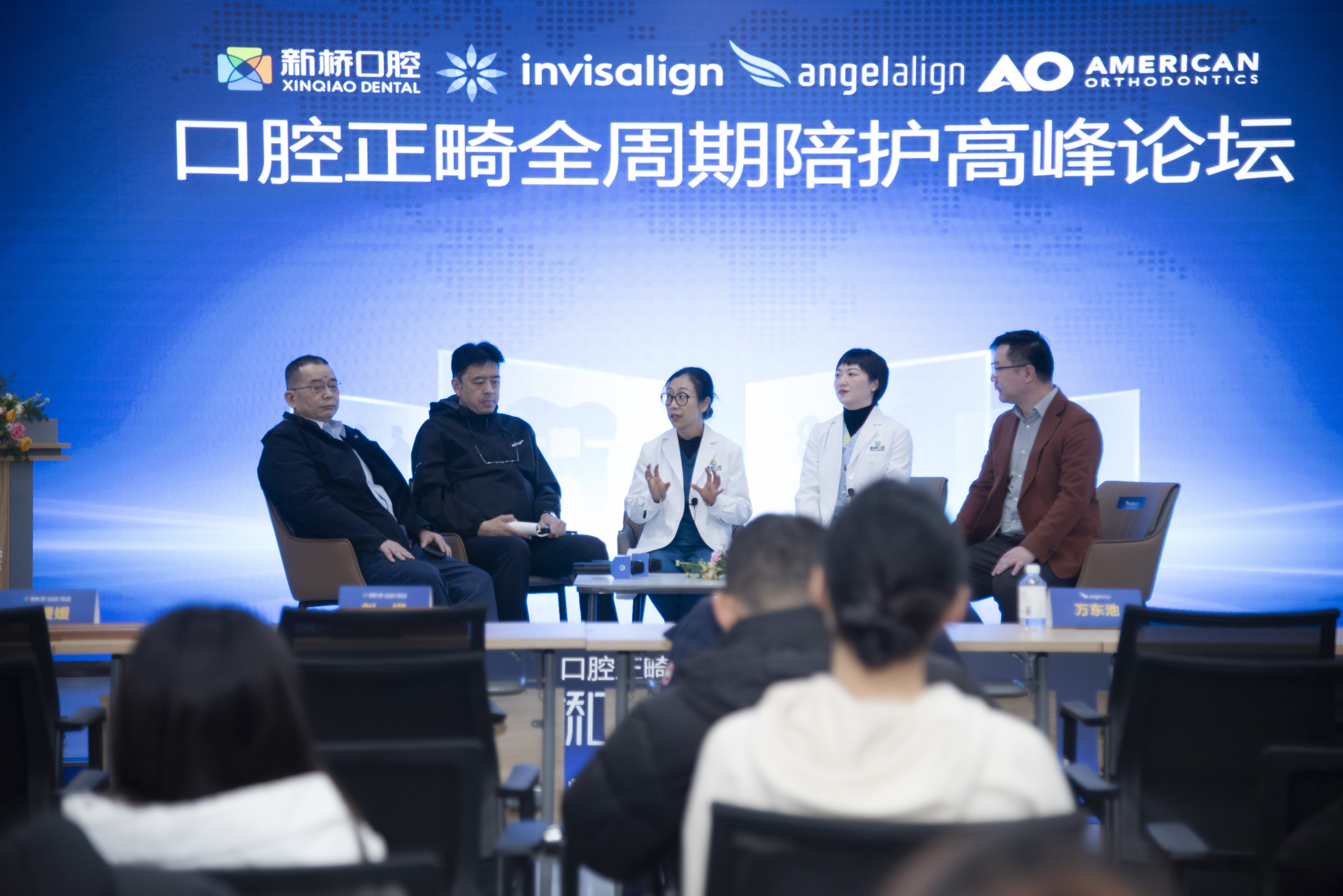 在现场,新桥口腔业务院长刘姗、儿童早期矫正专科主任周媛媛,与时代天使、隐适美、AO三大正畸品牌代表同台论道,共同围绕口腔正畸全周期陪护服务的行业价值与标准化建设展开了深度探讨。