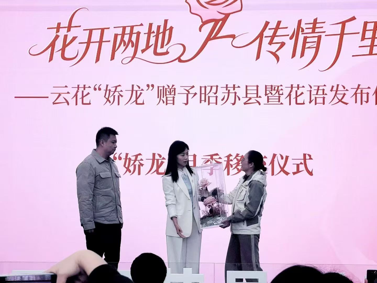 2月2日,记者从云南省农业科学院花卉研究所获悉,云花“娇龙”赠予昭苏县暨花语发布仪式在昆明举行。现场,云南省农业科学院花卉研究所育种团队首席研究员蔡艳飞将“娇龙”月季交接给昭苏。这也意味着,由云南自主培育的月季新品种“娇龙”,正式交接给因公殉职的新疆党员干部贺娇龙同志亲属。之后,“娇龙”月季也将从云南昆明启程,送往新疆维吾尔自治区昭苏县。